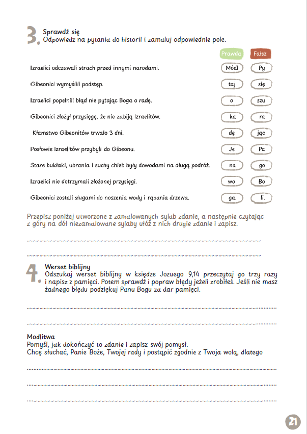 Lekcje biblijne dla klasy 3, semestr 1